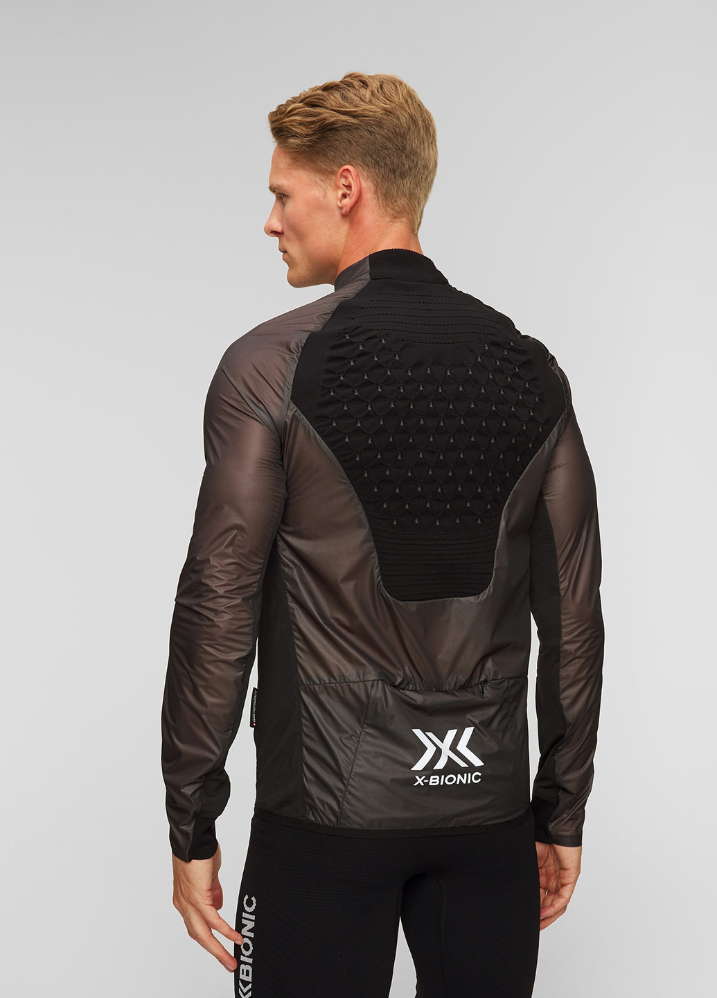 На спине расположена бесшовная вставка с системой 3D TRYCE®, которая помогает удерживать тепло и эффективно отводить лишнюю влагу. В сочетании с технологией 3D Bionic Sphere® куртка сама адаптируется к вашим потребностям: охлаждает, когда жарко, и согревает, когда становится холоднее.